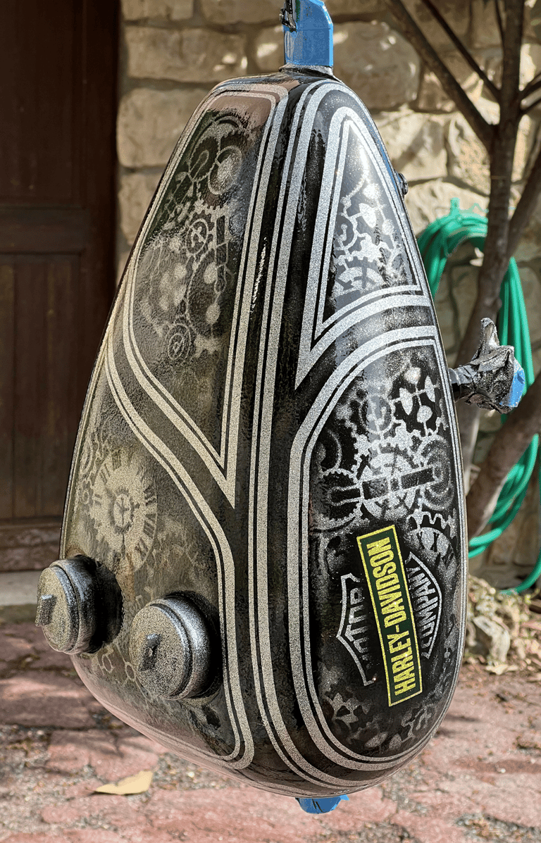Tank: Custom Dual Tank Cap 12L : Choppertank “STATE PRISON” Teardrop Flat Big" 2.8 gallon with Frisco mount (shallow tunnel)
