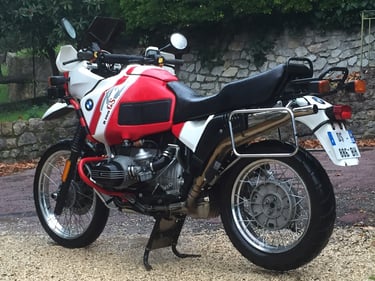 A 1993 BMW R100GS Paris Dakar setup for long haul adventure trips.