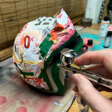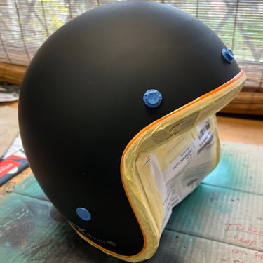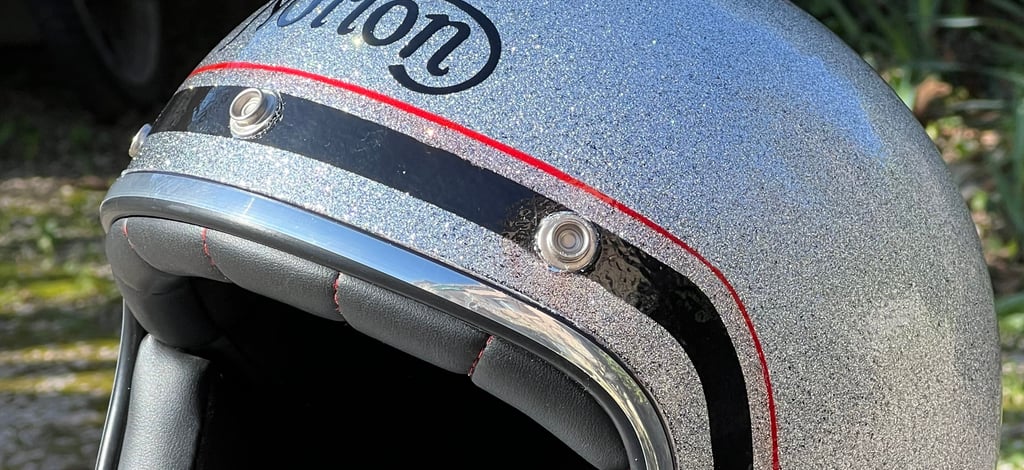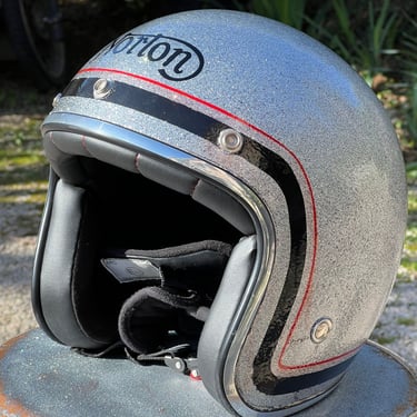 A vintage Norton styled metal flake open face helmet