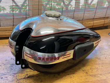Polished aluminium panel on top of 17L fuel tank